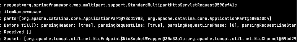 - request를 받는 class가 StandardMultipartHttpServletRequest로 바뀐 것을 확인 할 수 있다.