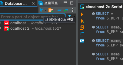 - sql 편집기는 좌측 상단에 SQL라고 적힌 양탄자 모양을 누르고 새 sql 편집기를 누르면 새로운 편집기가 생성된다.