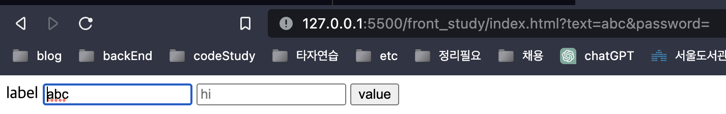 - value : 실제 값이 미리 들어감