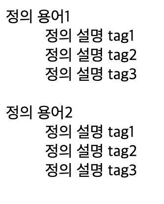- 특정 용어와 그 정의를 표현할 때 사용하는 tag