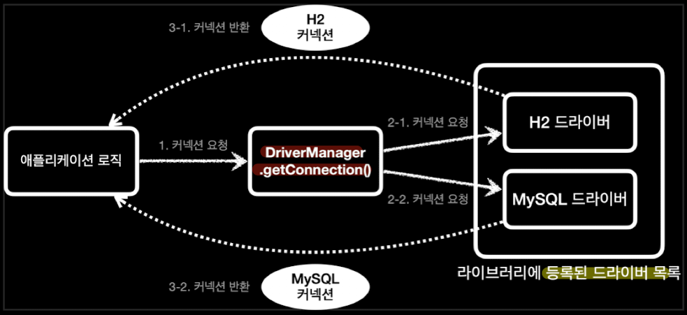- 이제 db가 무엇이지에 관계 없이 jdbc 표준 인터페이스의 3가지의 method만 사용하면 된다.