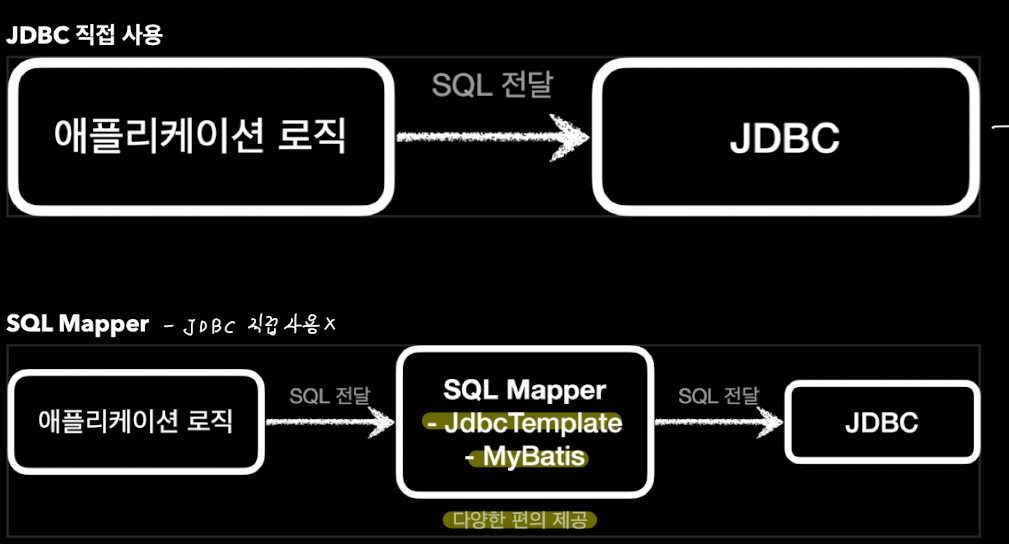 - sql mapper 이든 ORM 이든 내부에서는 모두 jdbc를 사용한다.