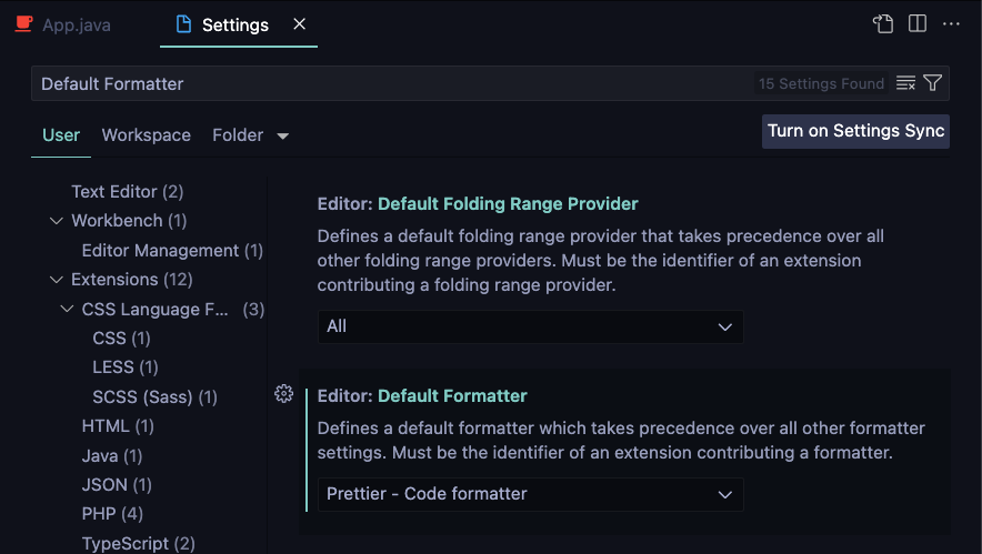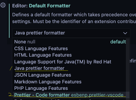 3. java 사용시 : Java prettier formatter 선택