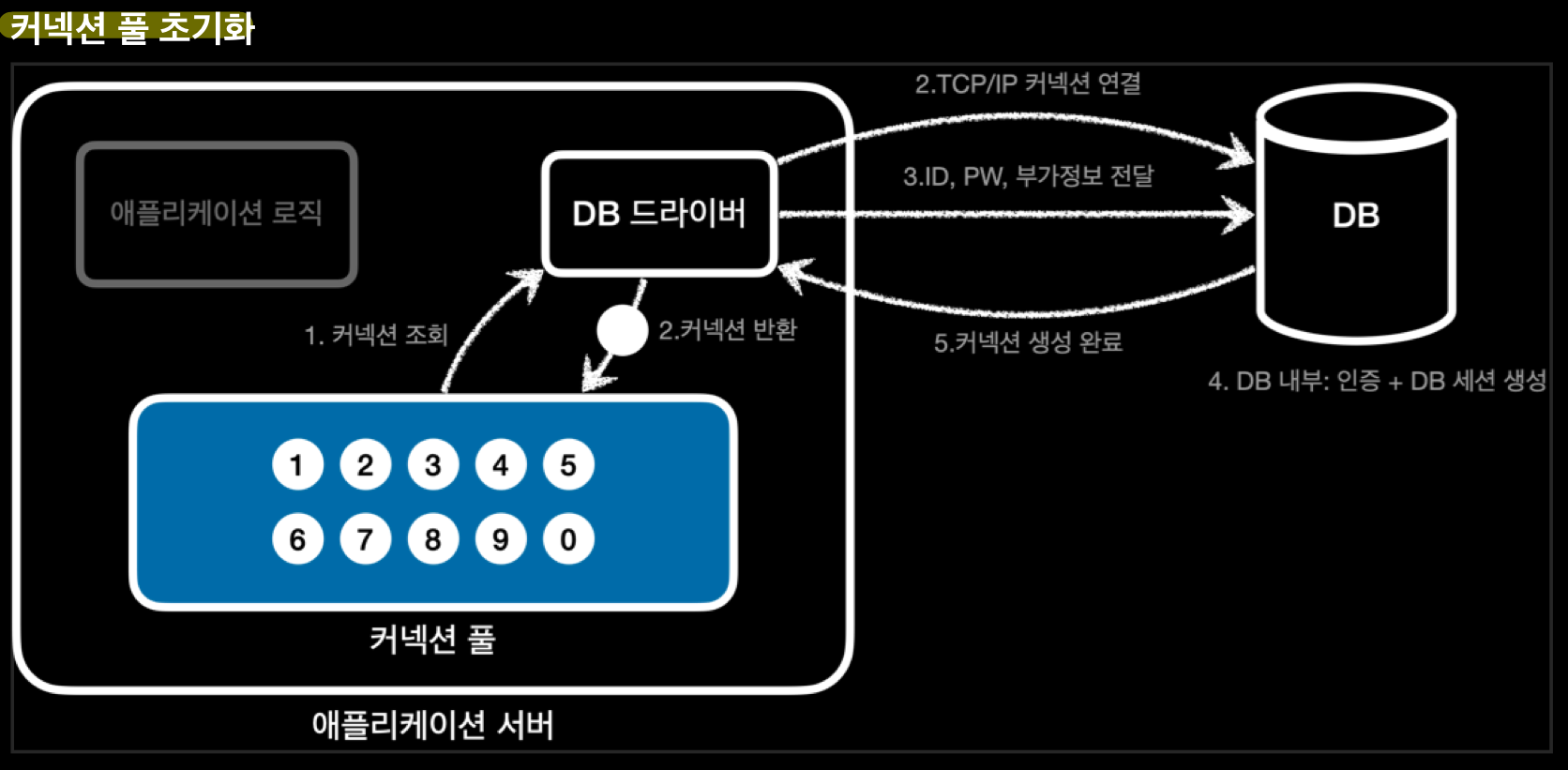 - pool에 있는 connection은 tcp/ip로 db와 connection이 연결되어 있는 상태이기 때문에 언제든지 즉시 sql을 db에 전달 가능하다