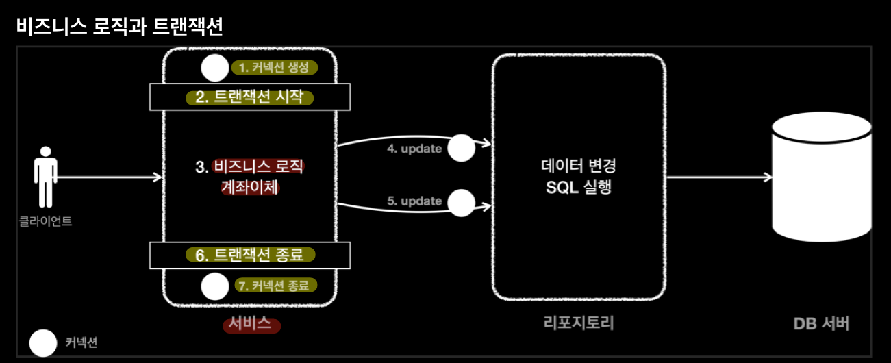 - service계층에서 connection을 관리함으로써, buiz logic에서 예외발생 시, rollback 수행 할 수 있게 된다.