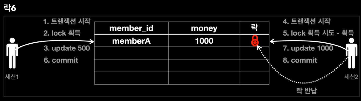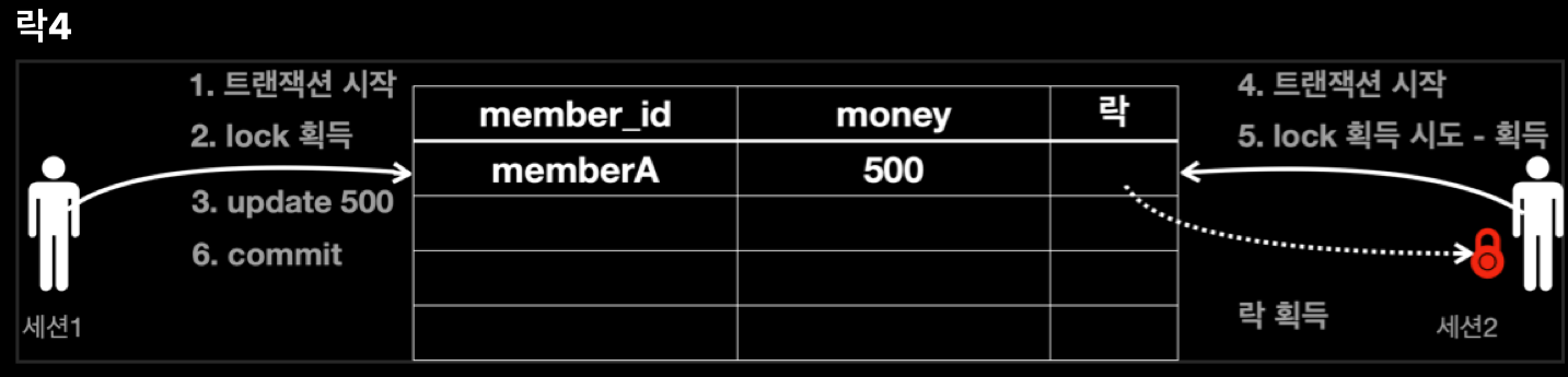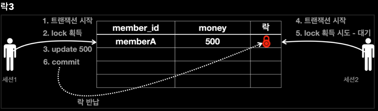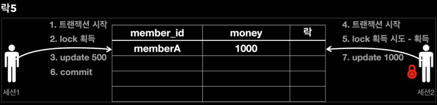 - 해당 문제를 방지하기 위해 session이 transaction을 시작하고 data를 수정하는 동안에는 commit이나 rollback 전까지 다른 session에서 해당 data를 수정할 수 없게 막아야 한다.