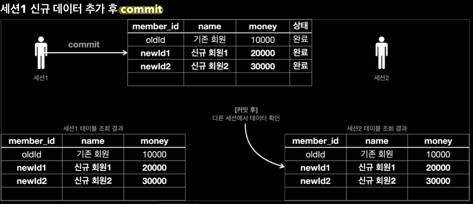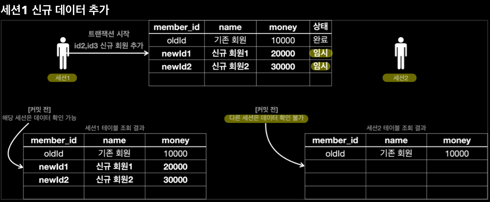 - 변경을 한 사용자의 session에서 변경 data가 보이고 다른 세션에게서는 변경 data가 보이지 않는다.
