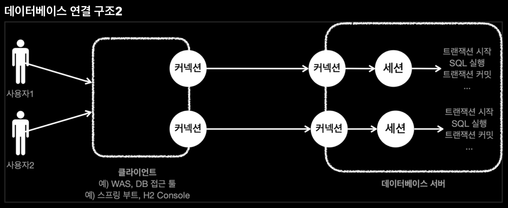 - connection을 통한 모든 요청은 session을 통해서 실행 - 개발자가 client를 통해 sql을 전달하면 connection을 통해 연결된 session이 sql을 실행