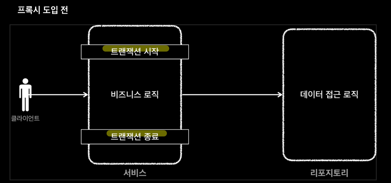- 스프링이 제공하는 트랜잭션 AOP는 Proxy 객체 생성 시, 스프링 빈에 등록된 트랜잭션 매니저를 찾아서 사용하기 때문에 트랜잭션 매니저를 스프링 빈으로 등록해두어야 한다.