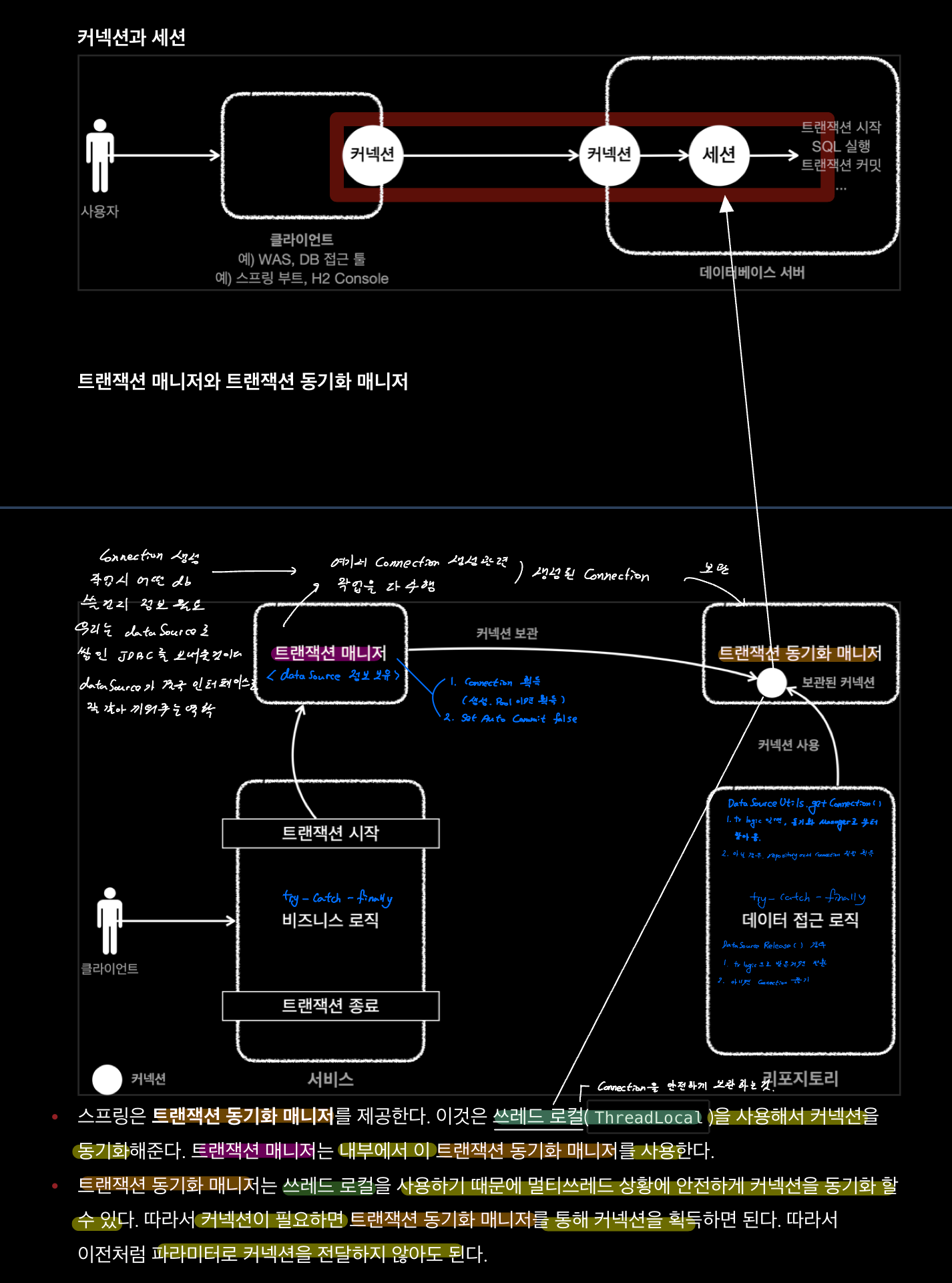 - 동일 트랜잭션 유지하기 위해 connection(con)을 params로 넘겼다.