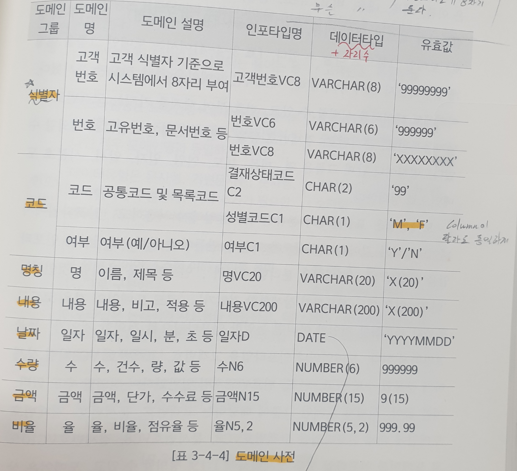 - 표준도메인: 단어 or 용어의 일종으로 데이터 값의 형식과 범위를 포함