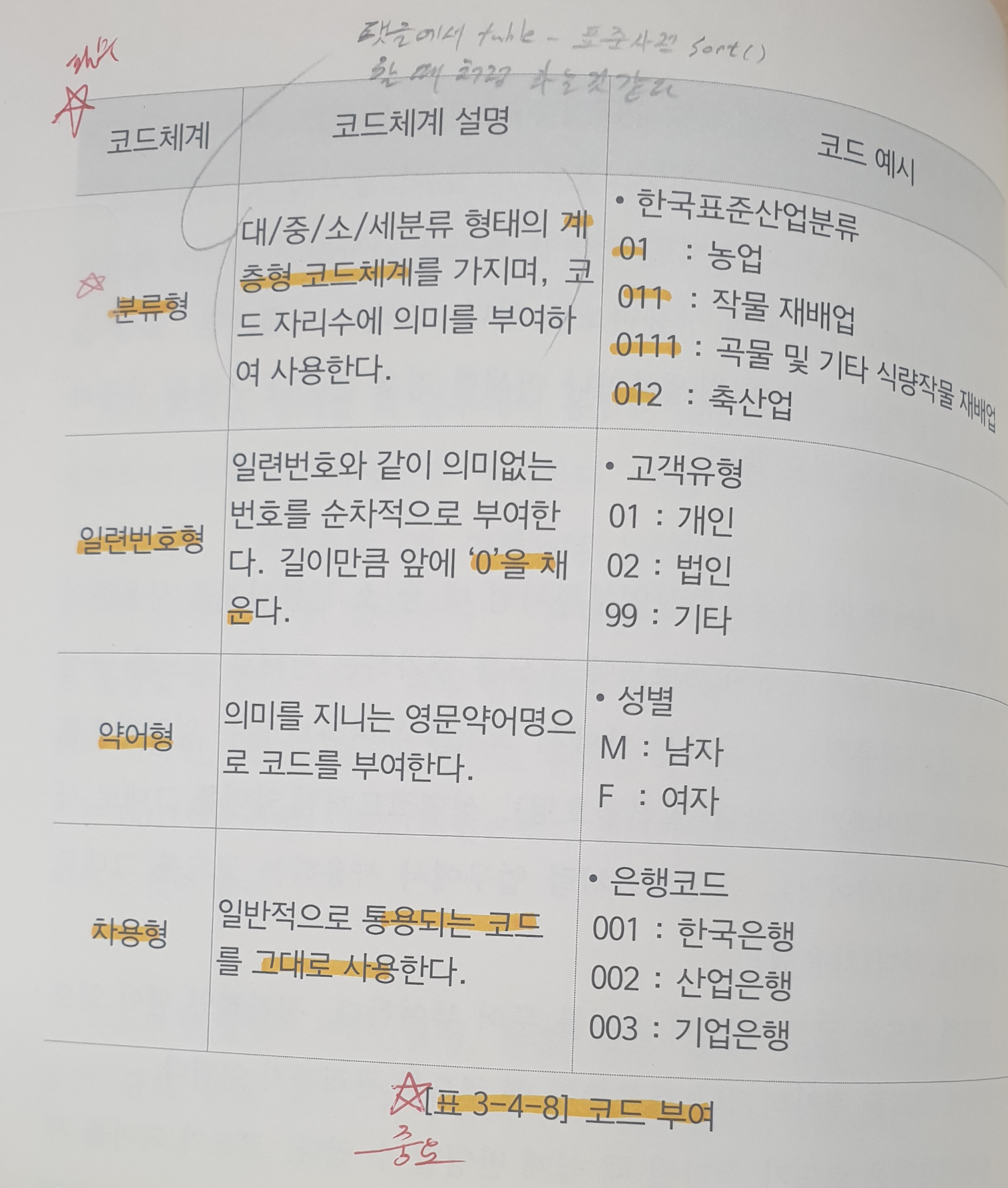 - 목록성 코드 : 한국표준산업분류코드, 코드 추가 변경이 자주 발생하고나 코드 구조가 복잡한 경우(계층구조)