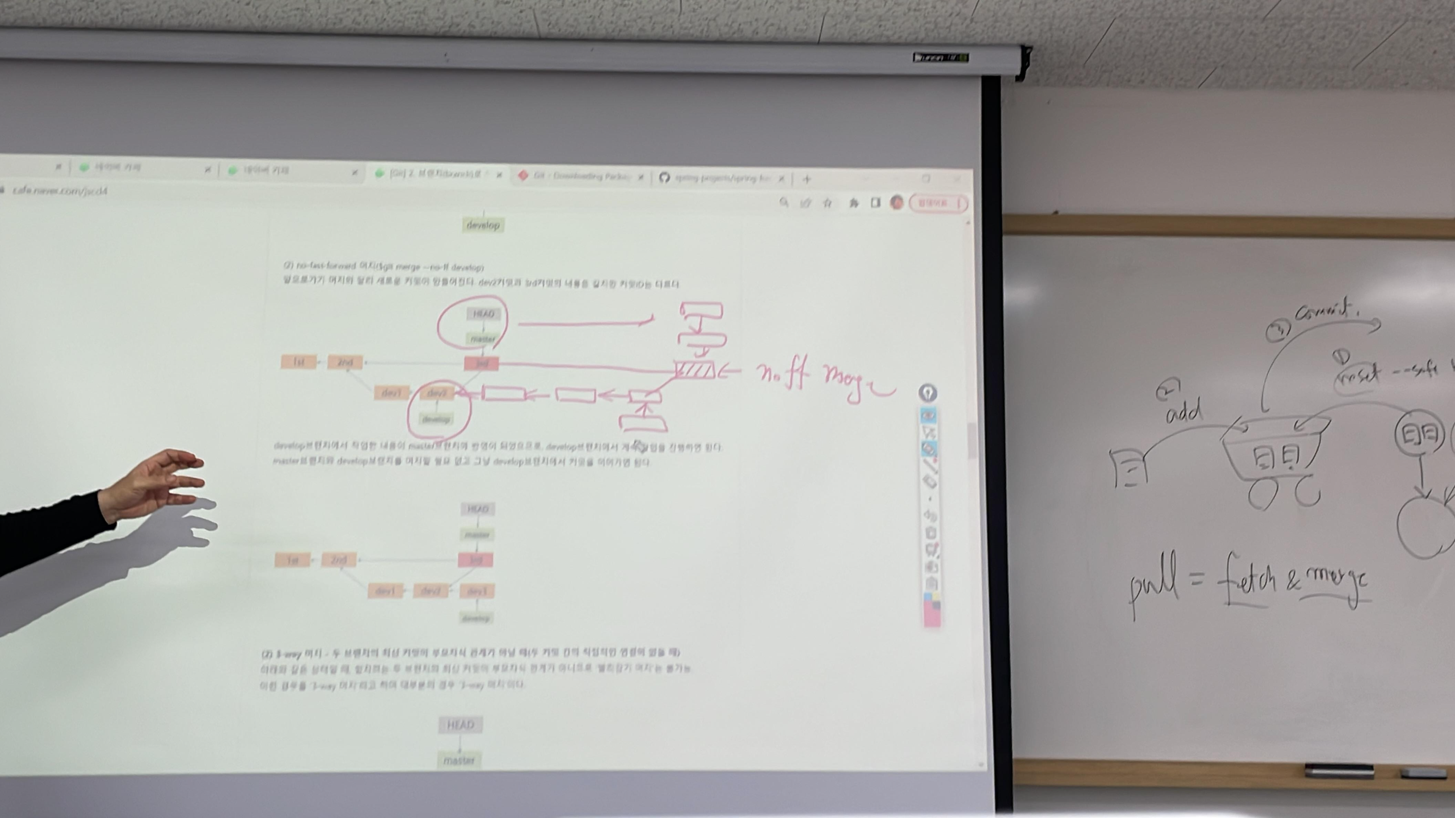 작업 시작전 항상 fetch & merge -> 자기꺼 수행 -> pr -> merge
