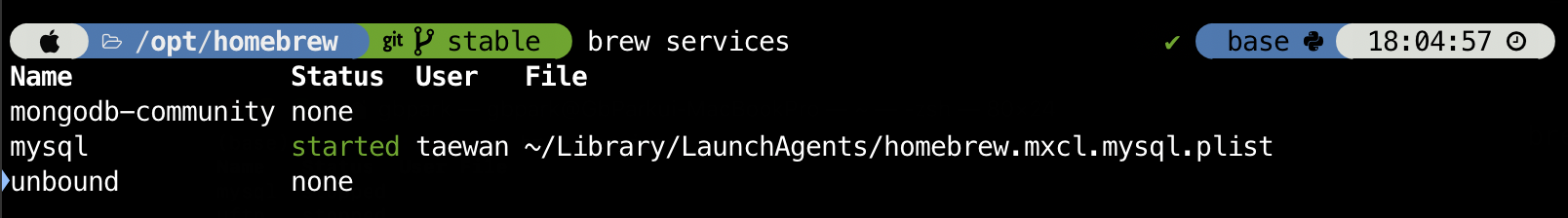 - 해당 명령어는 homebrew로 설치한 모든 서버 프로그램의 실행, 정지 상태