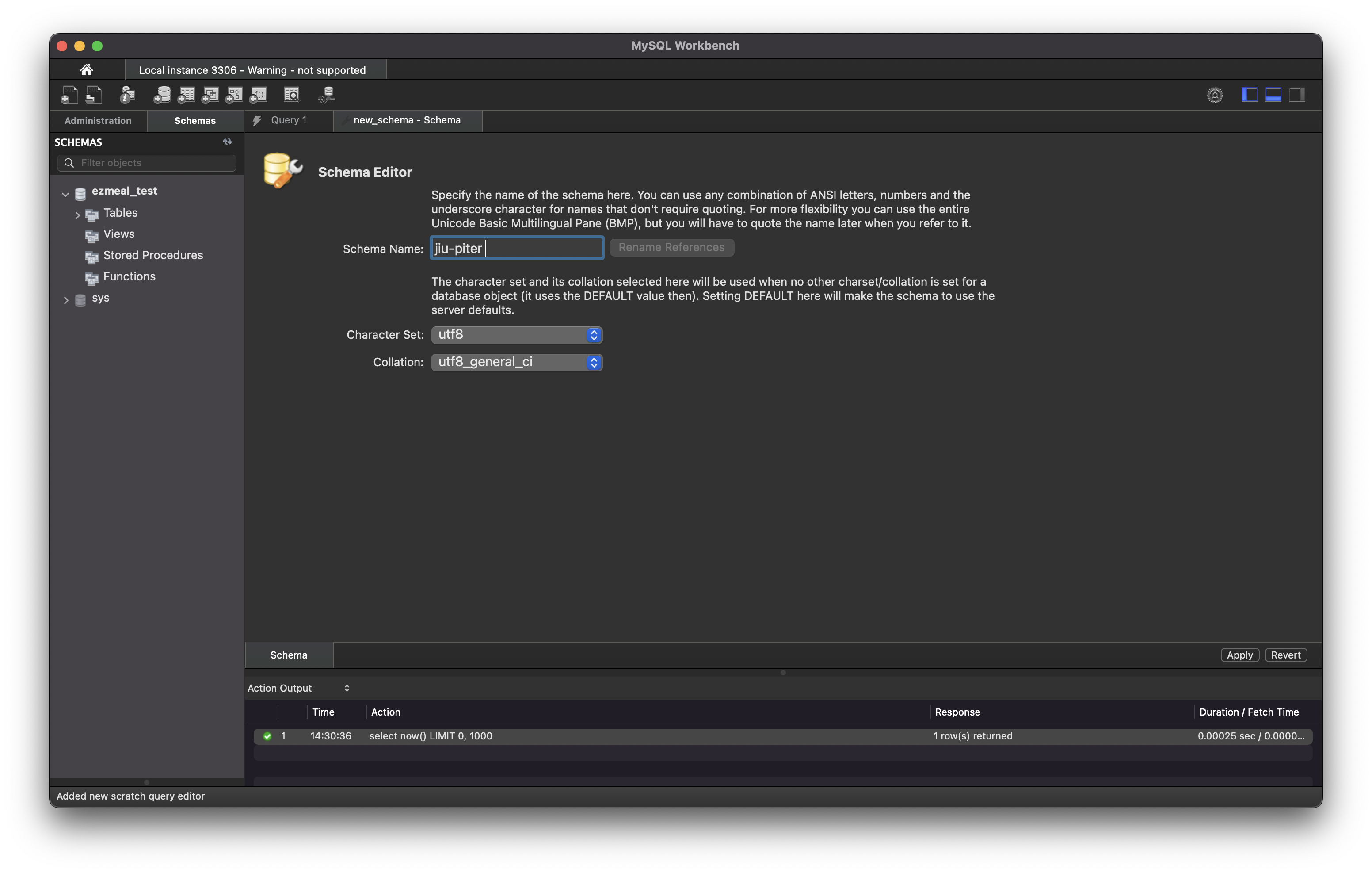 - apply 눌러야지 database==schema가 생성 됨