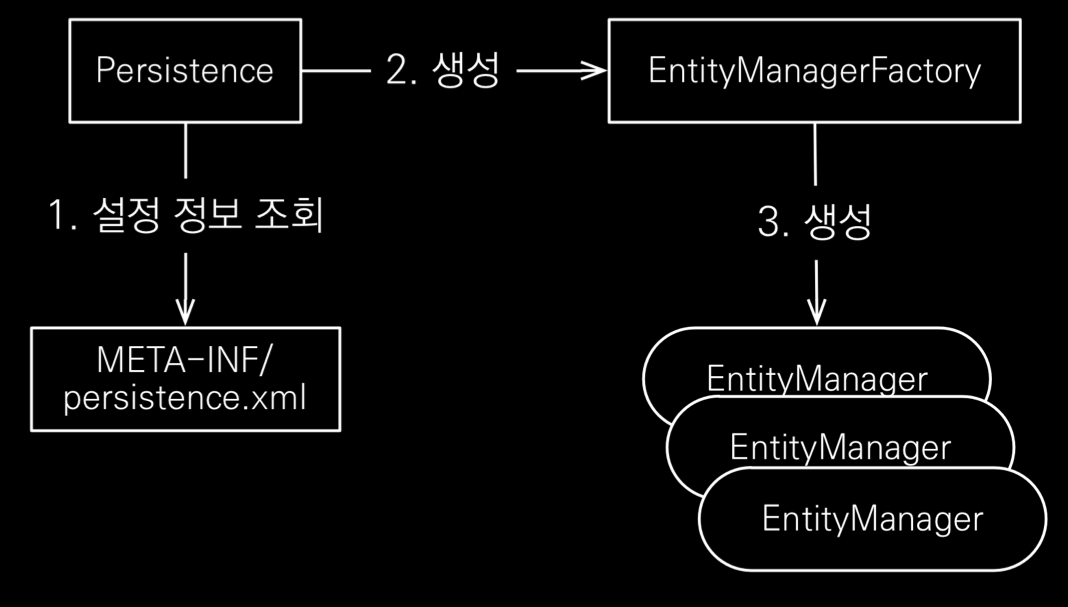 - 설정 정보에 등록한 persistence-unit 명을 entityMangerFactory 의 params로 넘겨서 entityMangerFactory 생성