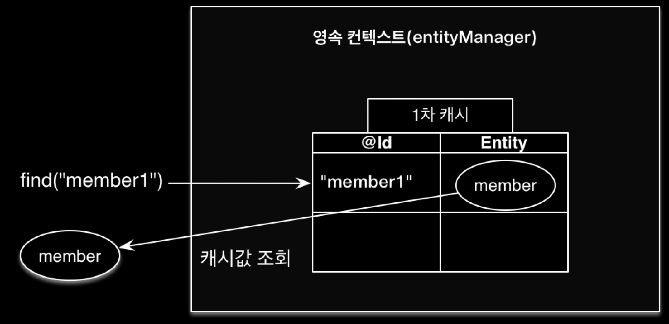 Member member1 = em.find(Member.class, 1L); // 영속성 context에 없어서 다시 쿼리 날림