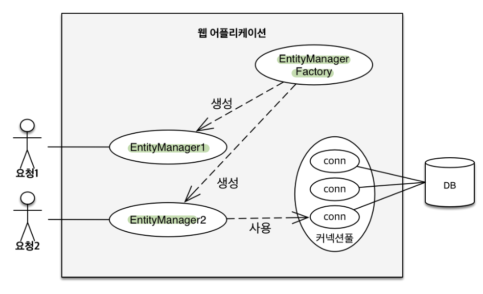 EntityManager em = emf.createEntityManager(); // database의 connection 하나 받았다고 생각하셈