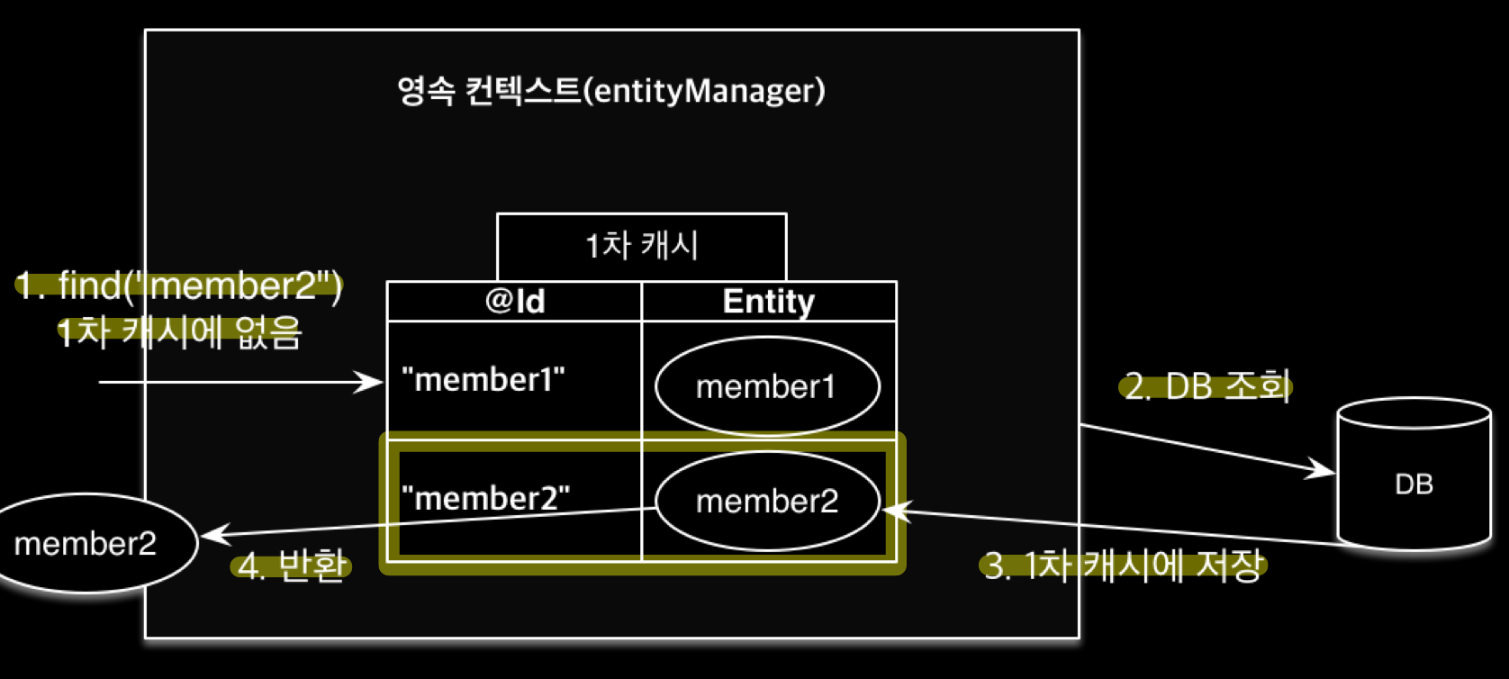 Member controlMember1 = em.find(Member.class, 2L); // 동일
