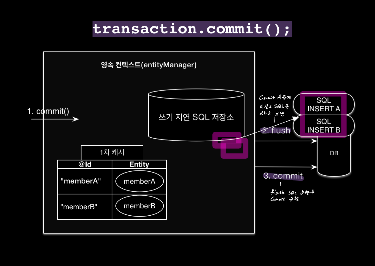 - 쓰기 지연 SQL 저장소에 있는 SQL이 DB로 전송되면 해당 SQL은 쓰기 지연 SQL 저장소에서 제거