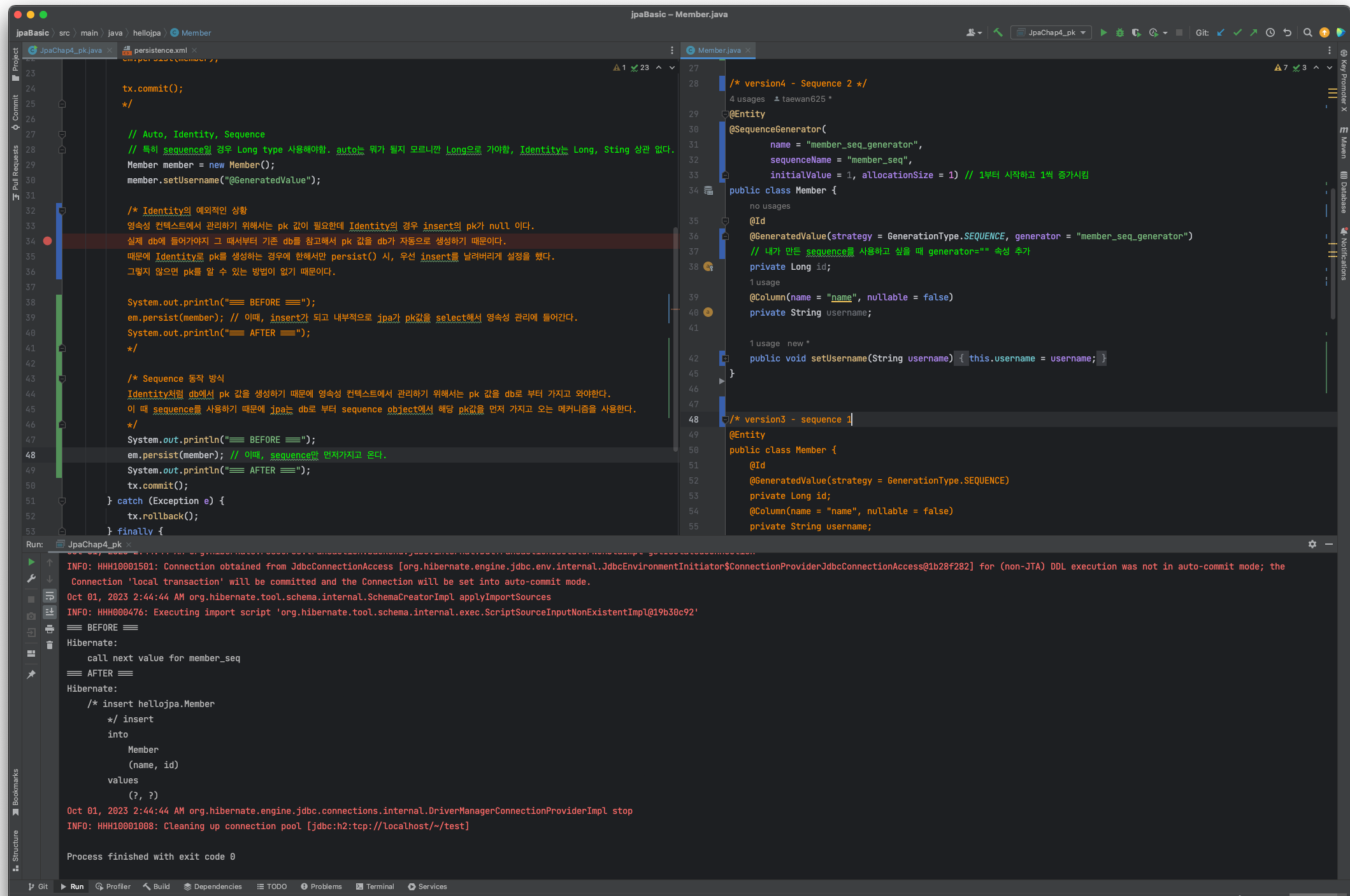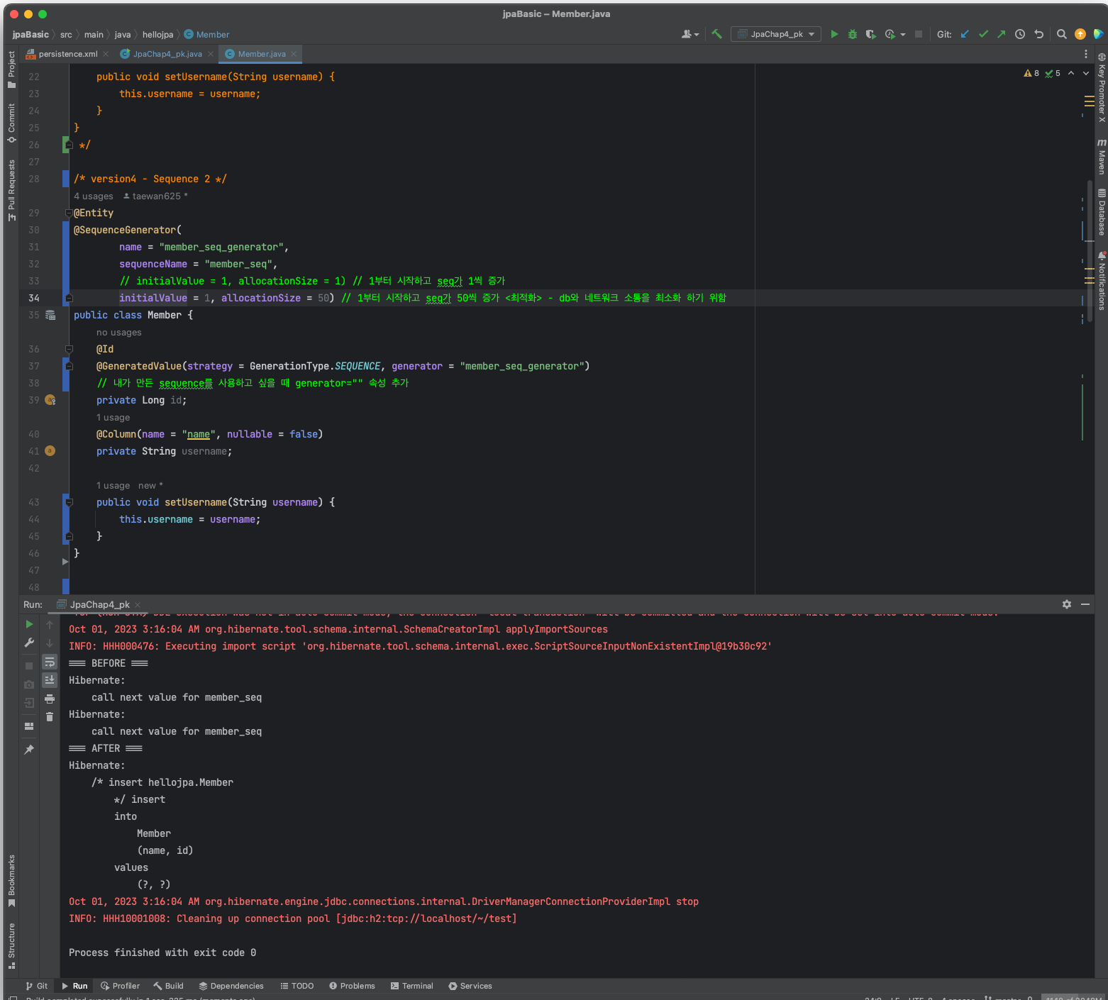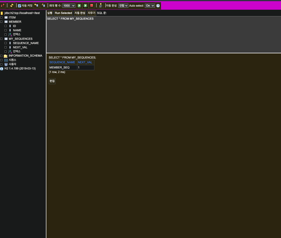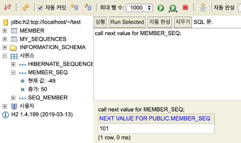 - Identity때와 마찬가지로 영속성 컨텍스트에 값을 넣기 위해서 jpa가 sequence를 db로 부터 select해 오고 거기가 +1 한 값을 영속성 컨텍스트의 pk 값으로 가진다.