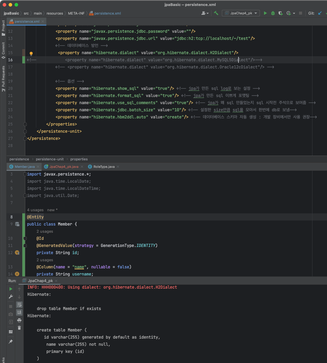 - DDL 생성 기능은 DDL을 자동 생성할 때만 사용되고 JPA의 실행 로직에는 영향을 주지 않는다.