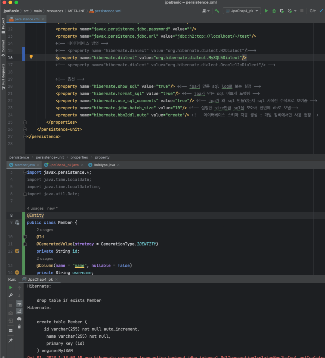 - 데이터베이스 방언을 활용해서 데이터베이스에 맞는 적절한 DDL 생성