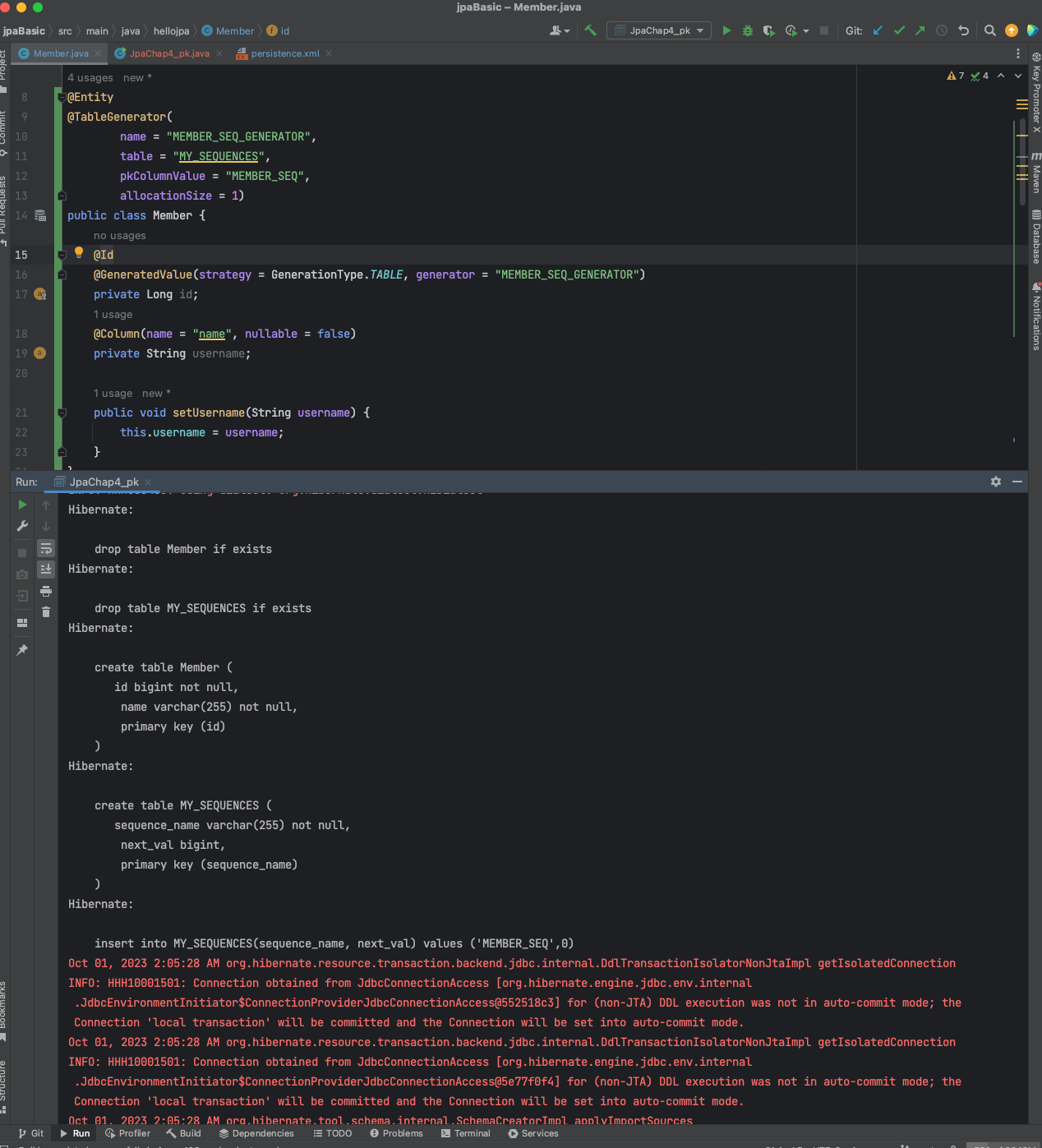 - DB 방언에 맞춰서 생성 : Identity, Sequence, Talbe 중에서 선택