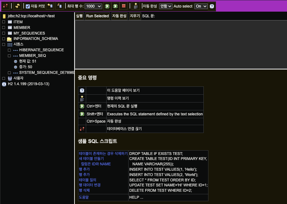 <!-- 데이터베이스 스키마 자동 생성 : 개발 장비에서만 사용 권장-->