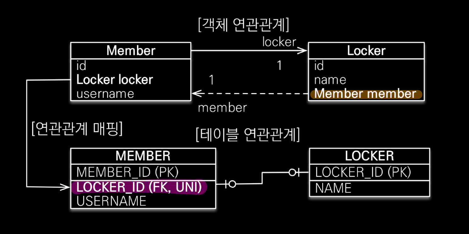 - 회원은 1개의 라커만 가질 수 있고 라커난 1명의 회원만 가지는 경우