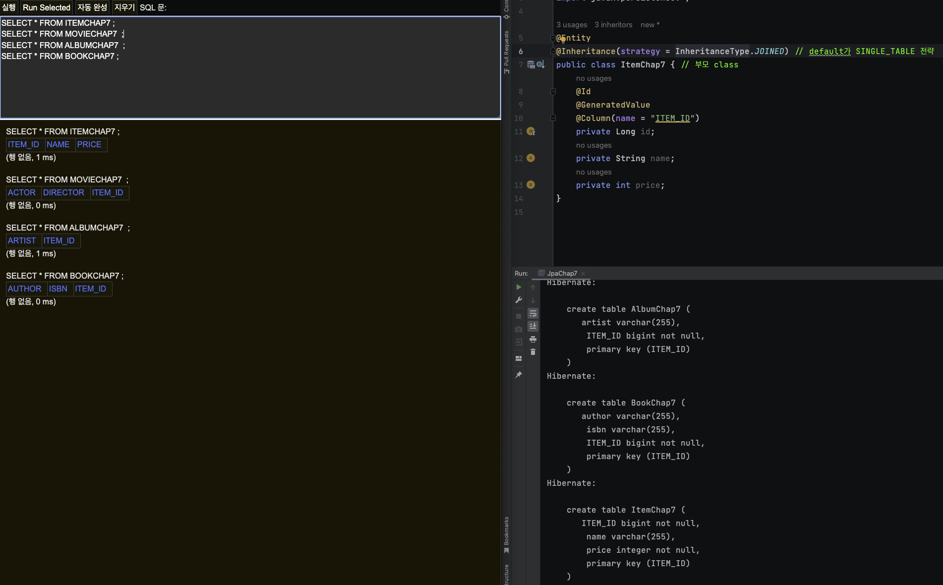 // ItemChap7 findMovie = em.find(ItemChap7.class, movieChap7.getId()); // 구현 class마다 table 전략의 문제점 - 관련 table을 다 뒤진다. 성능 문제