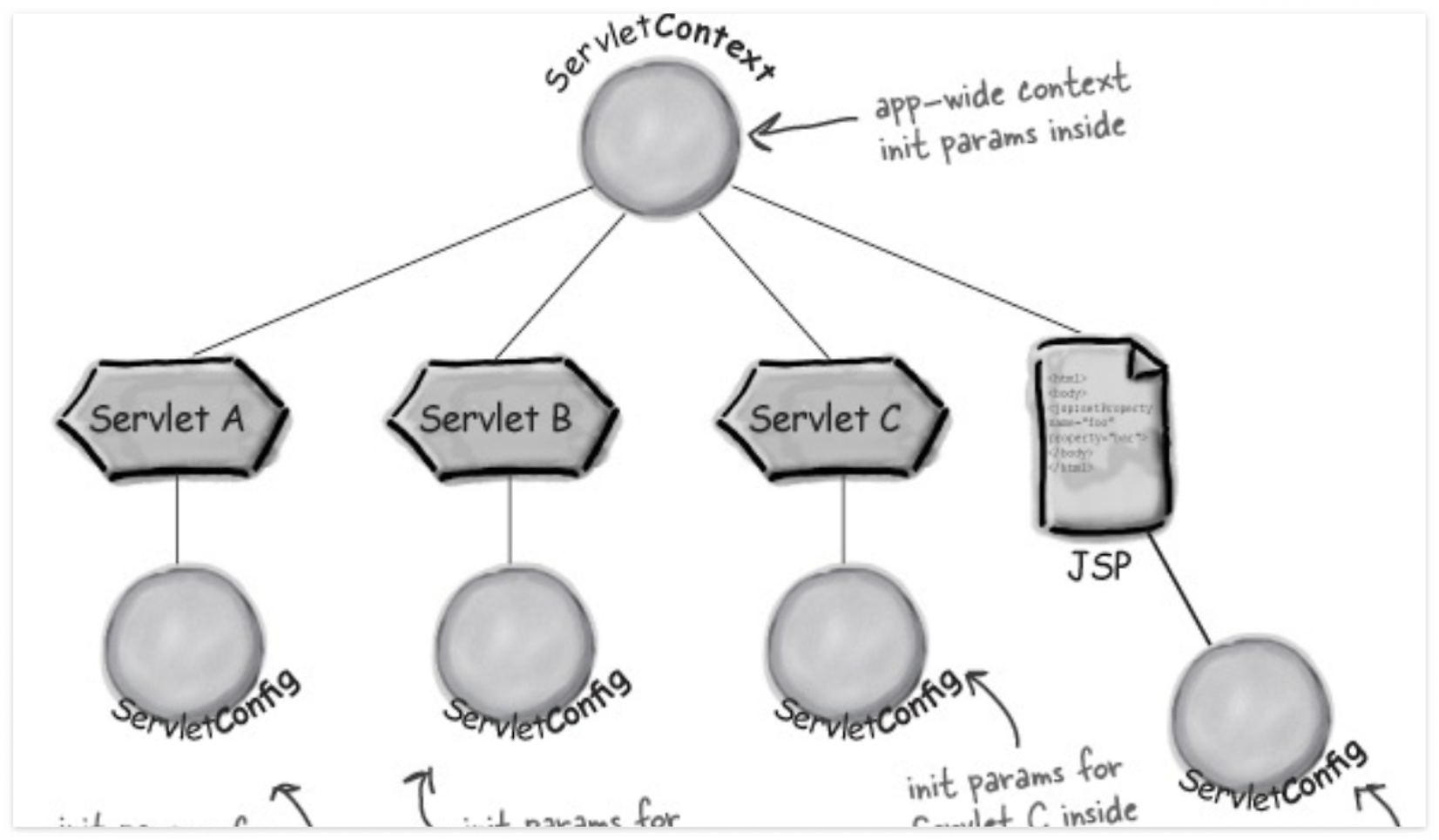 - ServletContext 오브젝트는 ServletConfig 오브젝트 내에 포함되며, 서블릿이 초기화 될 때 웹 서버가 서블릿을 제공