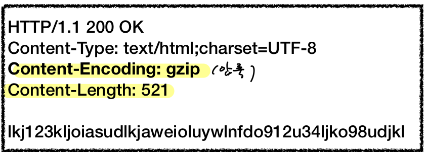 - Content-Encoding: 표현 데이터의 압축 방식