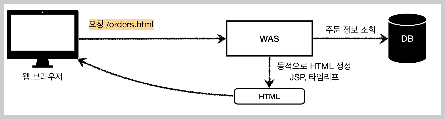 - WAS : HTML 파일 또는 Thymeleaf, Freemarker 등의 동적 뷰