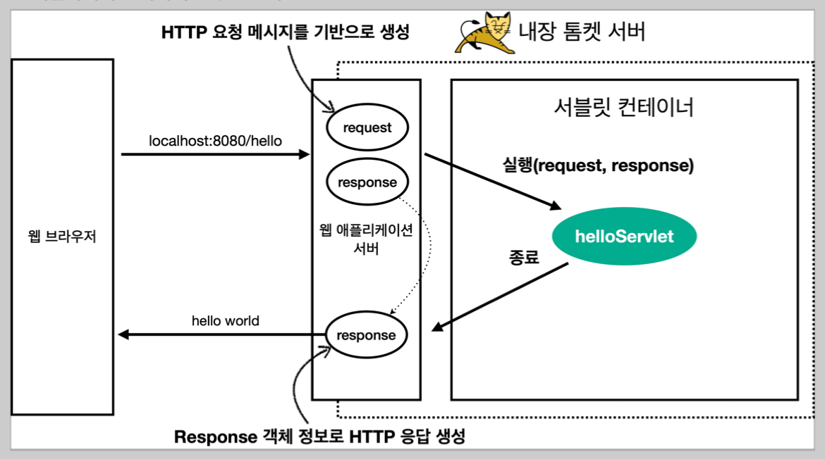 - 서블릿은 스프링관 관련이 없다. 스프링은 서블릿을 더 편하게 사용할 수 있도록 스프링 web mvc를 가지고 있을 뿐이다.