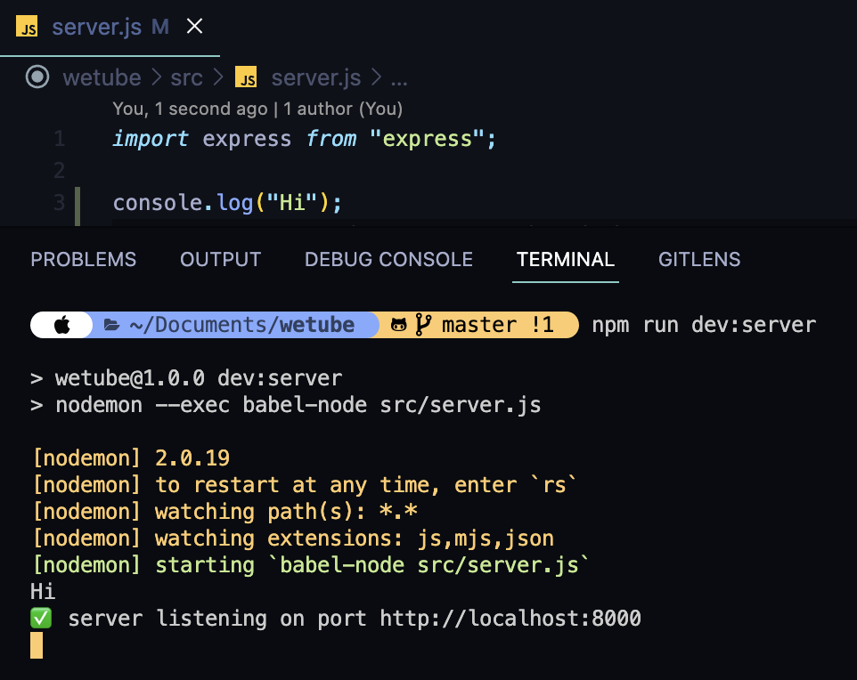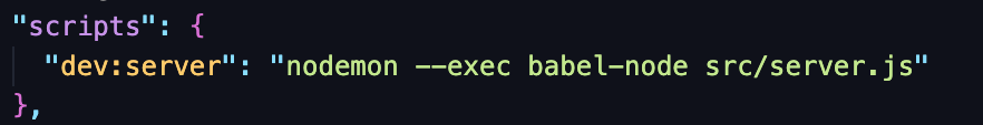 그러나 node command를 사용할 시 "nodemon --exec babel-node src/sercer.js" 모두 입력하는 번거로움이 생기게 됩니다.