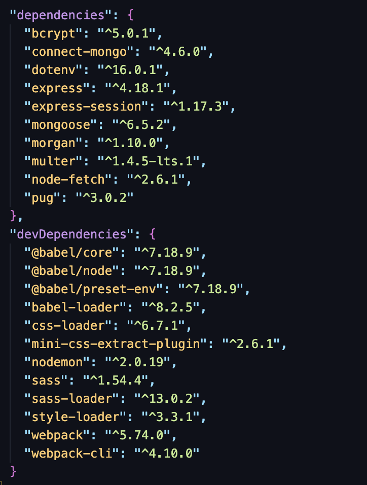 dependencies는 원하는 프로젝트를 실행하기 위해서 필수적인 package인 것입니다.