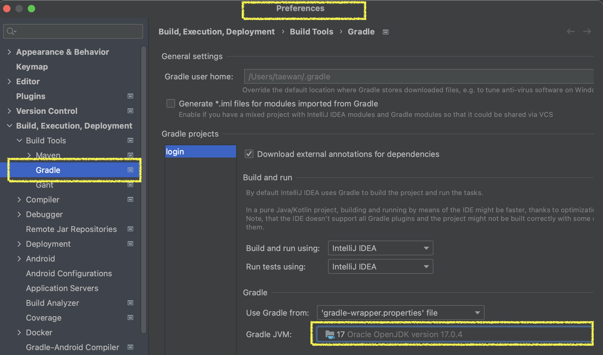 - Preference ->Build,Execution,Deployment -> Build Tools -> Gradle -> Gradle JVM