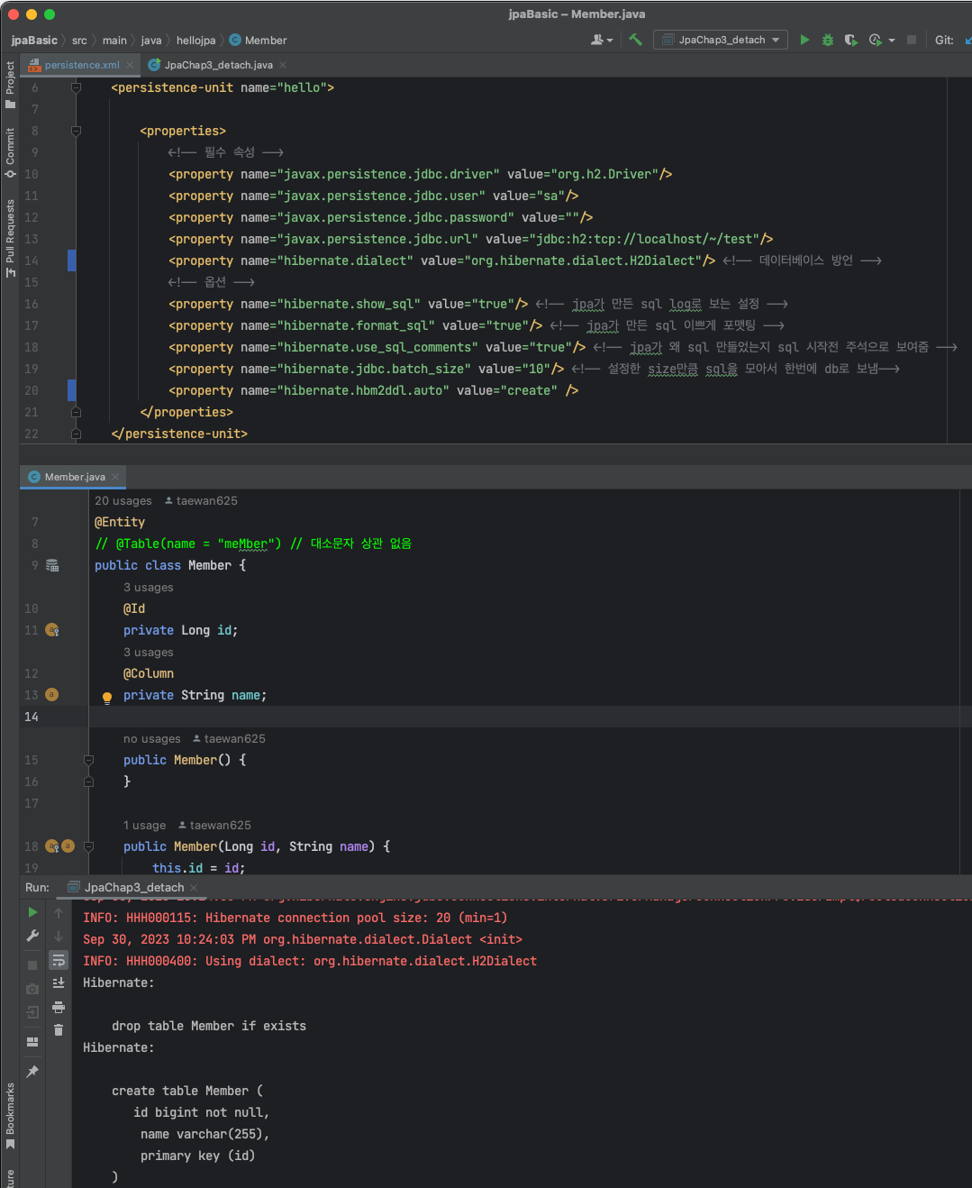 핵심 임베디드 타입(복합 값 타입) 값 타입 컬렉션 1. JPA 데이터 타입 분류 엔티티 타입 @Entity로 정의하는 객체 데이터가 변해도 PK(식별자)로 지속해서 추적 가능 회원 엔티티의 키나 나이 값을 변경해도 식별자로 인식 가능 값 타입 int, Integer, String 처럼 단순히 값으로 사용하는 자바 기본 타입이나 객체 식별자가 없고 값만 있으므로 변경시 추적 불가 숫자 100을 200으로 변경하면 완전히 다른 값으로 대체 2. 값 타입의 분류 기본값 타입 자바 기본 타입(int, double) 래퍼 클래스(Integer, Long) String 임베디드 타입(embedded type, 복합 값 타입) 컬렉션 값 타입(collection value type) 3. 기본값 타입 생명주기를 엔..