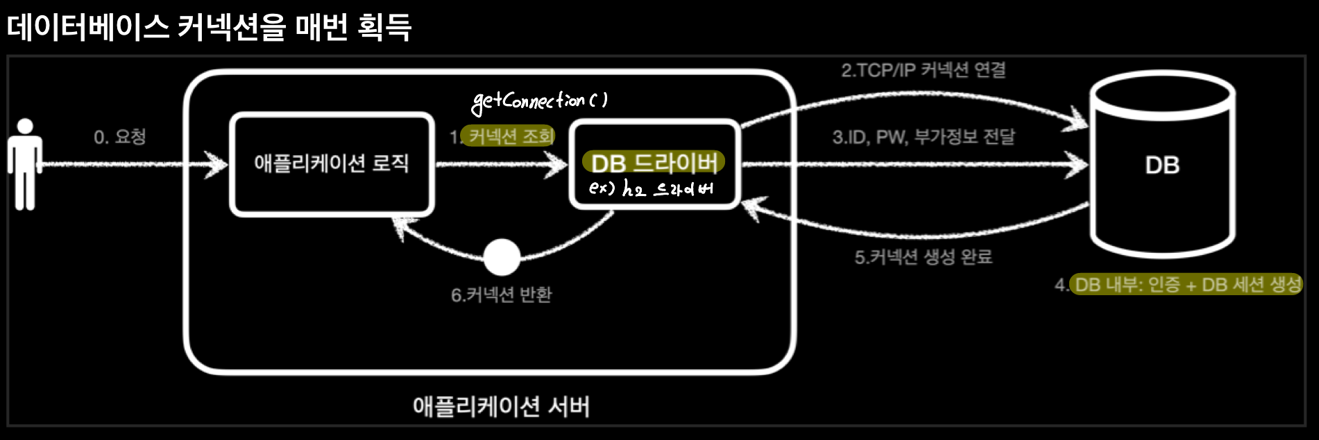 1. connectionPool의 이해 connection을 새로 만드는 것은 과정이 복잡하고 시간도 많이 소모된다. - app과 db의 connection 맺는 과정에서 3 way handshake가 수행되기 때문 문제점 DB , app server에서도 tcp/ip 컨넥션을 새로 생성하기 위한 리소스를 매번 사용 고객이 app을 사용할 때, SQL을 실행하는 시간, connection을 새로 만드는 시간이 추가되기 때문에 결과적으로 응답 속도에 영향을 준다. 해결방안 connection을 미리 생성해두고 사용하는 connection pool 방법 이용 connection pool app이 시작되는 시점에 connection pool은 필요한 만큼 connection을 미리 확보해서 pool에 보관한다..