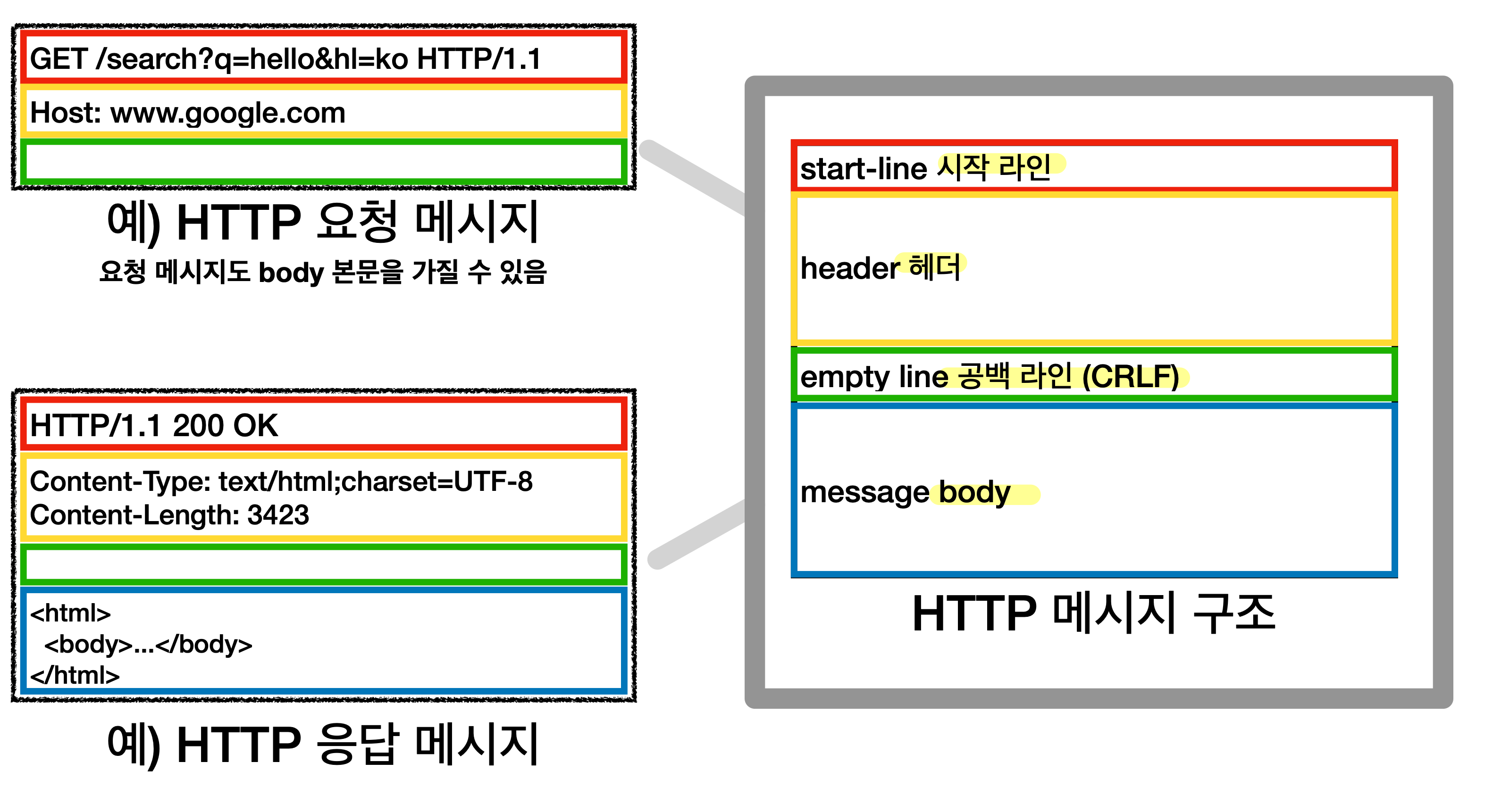http 메시지에 넣을 수 있는 것 HTML, TEXT IMAGE, 음성, 영상, 파일 JSON, XML (API) 거의 모든 형태의 데이터 전송 가능 서버간에 데이터를 주고 받을 때도 대부분 HTTP 사용 1. HTTP 역사 HTTP/1.1 1997년: 가장 많이 사용 RFC2068 (1997) -> RFC2616 (1999) -> RFC7230~7235 (2014) HTTP/2 2015년: 성능 개선 HTTP/3 진행중: TCP 대신에 UDP 사용, 성능 개선 참고: 현재 http 관련 저서들과 문서에서 RFC2616으로 된 것은 옛 버전이므로 피할 수 있도록하자. RCF7230 이 핵심 기술들이고 HTTP/2 , HTTP/3 은 버전 업그레이드 정도니 RCF7230를 자세히 알아야 함 2. 기반 프..