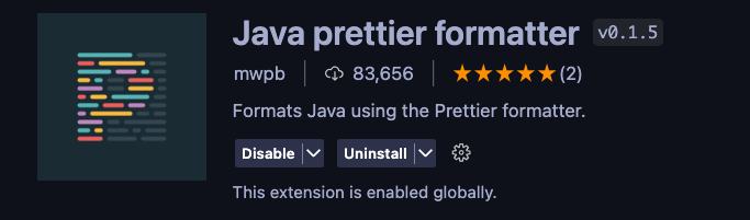 java prettier 사용하기 1. extension : prettier 과 Java prettier formatter 플러그인 설치 1. command , : 설정창 들어가기 2. Default Formatter : 내가 변경할 formatter 목록 들어가기 3. java 사용시 : Java prettier formatter 선택 JS,CSS,HTML 사용시 : Prettier - code formatter 선택 프로그램셋업 & 명령어/TOOL 2022.12.21